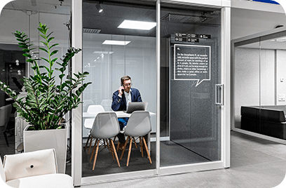 - Обеспечить личное пространство для конфиденциальных встреч и разговоров. Снизить общий уровень шума в офисе за счет изоляции звонков и разговоров.